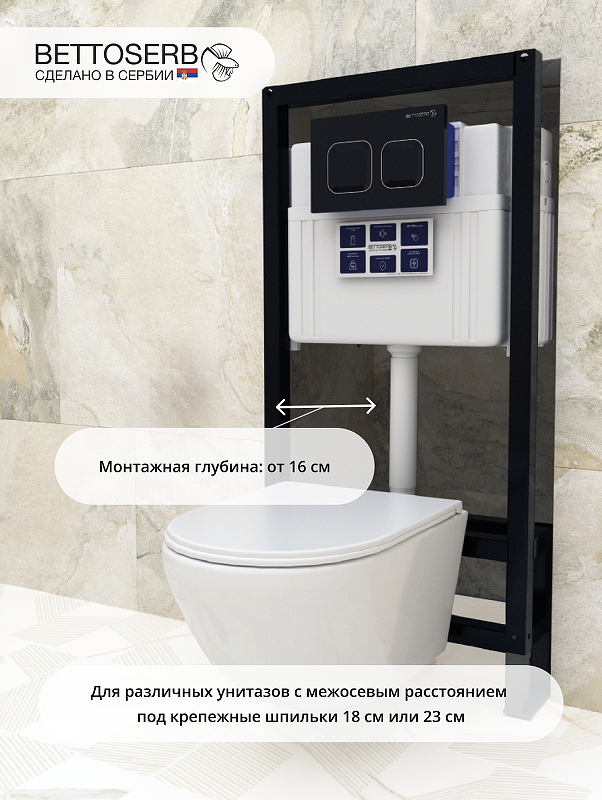 • Инсталляция Bettoserb Sava Free Standing SFS40006442 для унитаза с клавишей смыва Cool цвет Графит матовый